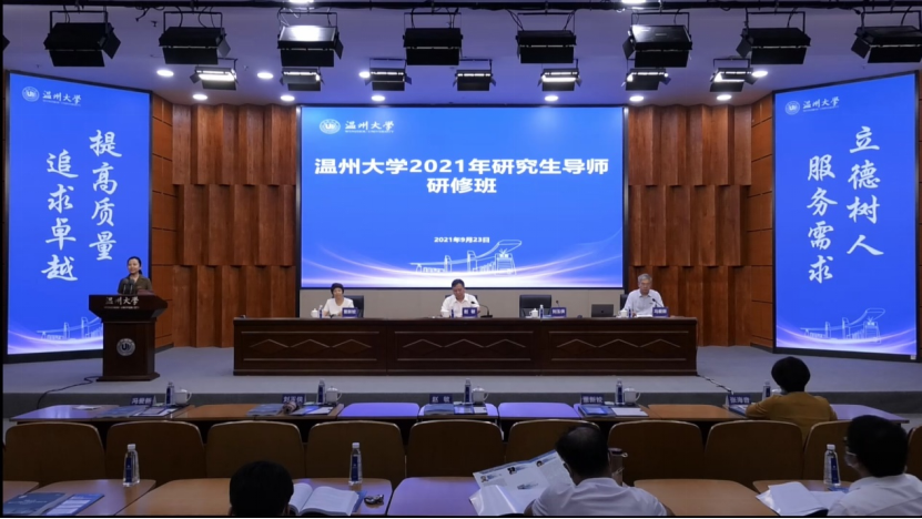 2021年9月23日下午,我校在岩松堂雁山厅和白鹿厅举行温州大学2021年研究生导师研修班开班仪式,校长赵敏出席开班仪式并作研修班动员讲话,各研究生培养单位分管领导、新增选的研究生导师、教发中心负责人、研究生院全体人员等130余人参加了研修班。